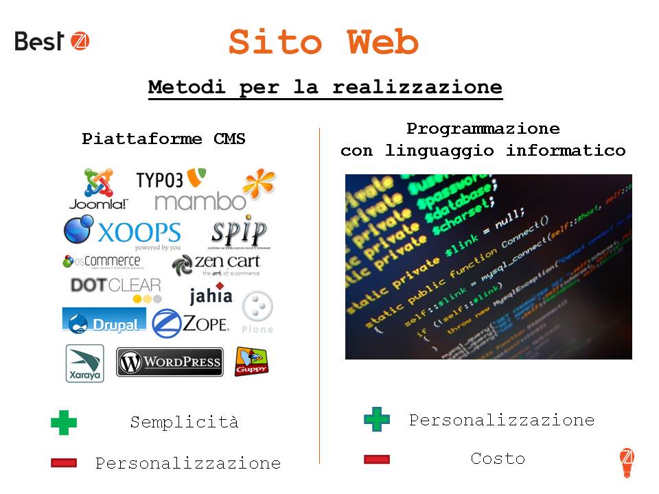 I primi non permettono una personalizzazione totale ma sono più semplici da usare ed hanno costi e tempi (relativamente) più contenuti rispetto allo sviluppo tramite linguaggio di programmazione. I secondi consentono sì una elevata personalizzazione del sito ma a costi e tempistiche decisamente più corposi.
